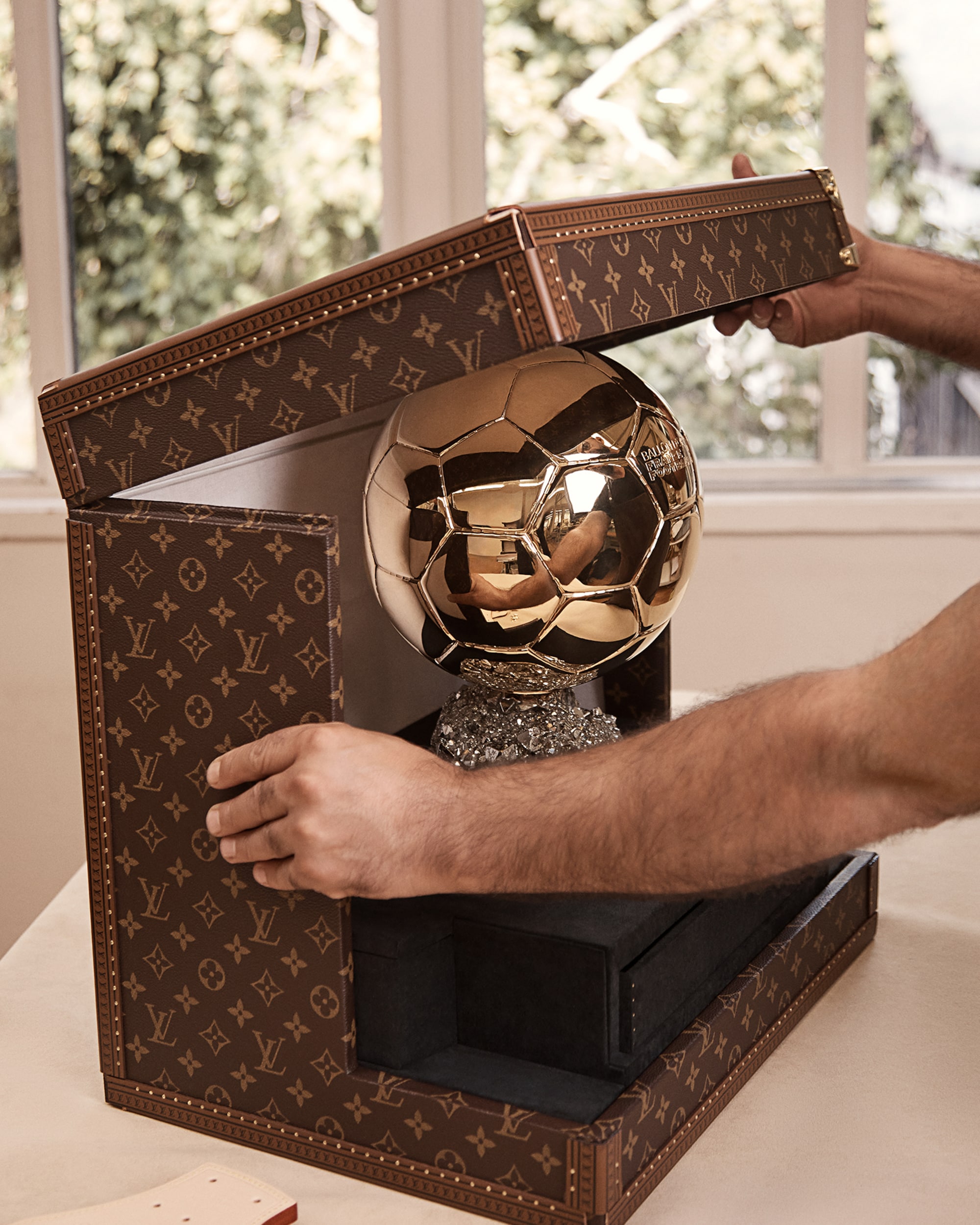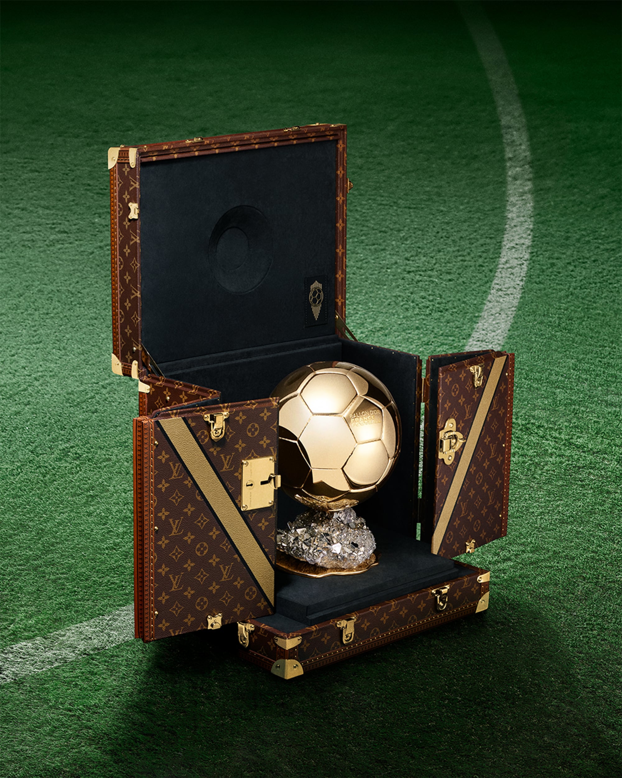 Là Đối tác chính thức của Ballon d’Or™, Louis Vuitton giới thiệu 2 tác phẩm sáng tạo được thiết kế riêng để đựng giải thưởng danh giá dành cho cầu thủ bóng đá nam và nữ – được trưng bày trên sân khấu trong lễ trao giải lần thứ 69 vào ngày 22/9/2025. Thể hiện ngôn ngữ thiết kế biểu tượng của Maison, mỗi chiếc rương đều được hoàn thiện bằng vải Monogram Canvas và có họa tiết chữ V màu vàng – tượng trưng cho “Victory” (Chiến thắng) và “Vuitton”, đồng thời tôn lên vẻ đẹp huy hoàng của chính Ballon d’Or™.