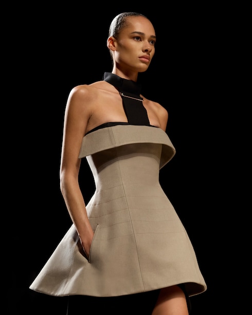 Hình dung về những thiết kế trang phục tương phản, Nicolas Ghesquière mang đến phong cách nữ tính đa chiều, lồng ghép ấn tượng giữa kiểu dáng đứng phom và sự mềm mại, giữa họa tiết và hình in sống động. Được phác họa bằng những đường nét phóng khoáng đầy tinh tế, bộ sưu tập là sự kết hợp hài hòa của kỹ thuật may đặc trưng cùng những điểm nhấn vừa hoài cổ vừa mang cảm hứng vị lai.