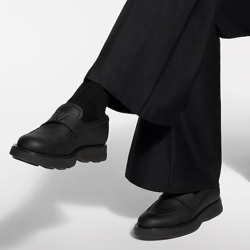 Giày lười Bastille được làm từ da bê có vân dập nổi họa tiết Aerogram, chất liệu biểu tượng của dòng sản phẩm da Louis Vuitton, nổi bật với độ bền vượt trội cùng bề mặt mờ sang trọng. Quai giày phía trên được điểm xuyết với logo LV, trong khi chi tiết trang trí bằng cao su Neoprene ở phía sau được dập nổi họa tiết Damier. Đế ngoài bằng cao su to bản nhưng nhẹ tênh hoàn thiện tổng thể.
