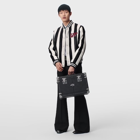 Thuộc bộ sưu tập (BST) Thu-Đông 2024, áo khoác Bomber gây ấn tượng với họa tiết kẻ sọc màu đen-trắng được tái hiện bằng kỹ thuật Intarsia trên nền chất liệu da trăn tự nhiên, thể hiện kỹ nghệ bậc thầy của nhà mốt Pháp. Không chỉ lưu lại dấu ấn thương hiệu, những chi tiết thêu trang trí trên ngực áo và mặt sau còn mang đậm hơi thở miền viễn Tây - chủ đề của BST lần này. Khuy bấm hiệu ứng ngọc trai hoàn thiện tổng thể sang trọng.