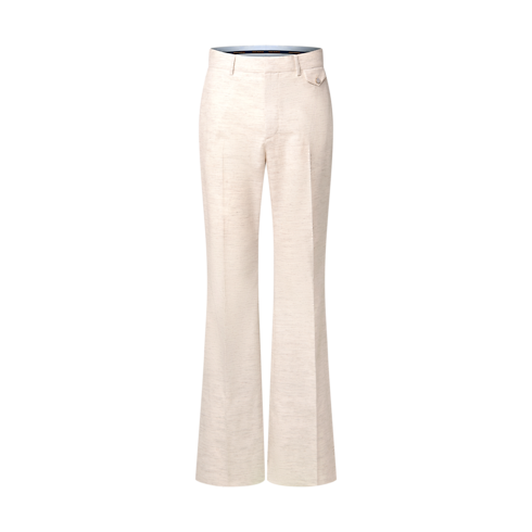 Mẫu quần dài ống loe thanh lịch này là sự kết hợp hài hòa giữa chất tinh tế và những gam màu chủ đạo của bộ sưu tập Xuân-Hè 2026 lấy cảm hứng từ đất nước Ấn Độ. Thiết kế được may từ hỗn hợp len-Cotton màu be nhạt với bề mặt dệt nổi những sợi màu bắt mắt. Trong khi đó, dòng chữ Louis Vuitton Paris lưu lại dấu ấn thương hiệu tinh tế phía trên túi sau. Mẫu quần có thể kết hợp cùng áo khoác hai hàng khuy đồng điệu để tạo nên bộ âu phục sắc sảo cho mùa xuân.