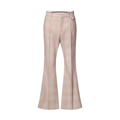 Xuất hiện trong buổi trình diễn bộ sưu tập Xuân-Hè 2026, mẫu quần dài ống loe toát lên nét thẩm mỹ tinh tế của phong cách Dandy kiểu Ấn Độ. Được may đo từ len cao cấp có họa tiết kẻ caro Glen trong gam màu nâu Camel, thiết kế nổi bật với những hạt cườm được đính kết tựa trang sức dọc đường may ở hai bên quần, cùng chữ Louis Vuitton Paris màu đồng điệu ở phía sau. Sản phẩm có thể kết hợp với áo khoác đồng điệu để tạo nên bộ âu phục thanh lịch.