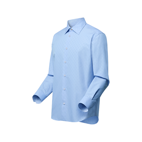 Là điểm nhấn thanh lịch cho bộ âu phục trang trọng, mẫu áo sơ mi dài tay được may từ vải Cotton hữu cơ màu xanh dương nhạt với họa tiết LV Fishnet tinh xảo. Các dấu ấn của Maison còn được thể hiện qua logo LV ở khuy áo đầu tiên cùng nhãn dệt chữ LV và hoa Monogram ở cuối nẹp áo. Thiết kế sẽ kết hợp hài hòa với bộ âu phục đồng điệu để tạo nên tổng thể tinh tế.