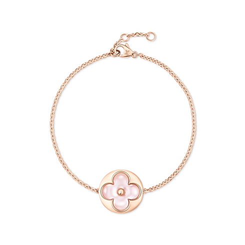 Mẫu trang sức Color Blossom tôn vinh hoa Monogram biểu tượng do con trai của nhà sáng lập, Georges-Louis Vuitton, thiết kế vào năm 1896. Mẫu vòng tay quý giá từ vàng hồng 18K sở hữu mô típ Mặt Trời được chạm khắc từ ngọc trai vỏ hồng và được đánh bóng thủ công tinh xảo. Các nghệ nhân đã dành nhiều tháng làm việc tỉ mỉ để hoàn thiện đường cong tinh tế cùng độ lấp lánh hoàn hảo. Phụ kiện thanh lịch này có thể kết hợp với các sản phẩm khác trong cùng bộ sưu tập.
