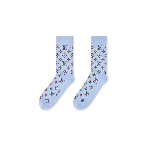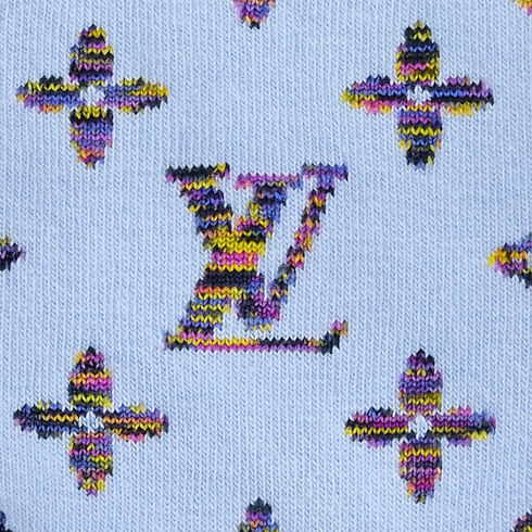 Bộ tất bằng vải Cotton nhẹ tênh này gây ấn tượng với họa tiết tinh nghịch cùng phối màu tươi sáng, rực rỡ. Họa tiết Monogram được cách điệu với nhiều gam màu, từ màu vàng tới màu tím, và trải dài từ phần thân tới đầu tất. Thiết kế được hoàn thiện với logo Louis Vuitton ở dưới mỗi lòng bàn chân.