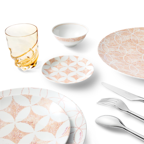 Bộ đĩa Constellation bằng sứ trắng cao cấp gây ấn tượng với họa tiết tinh xảo lồng ghép giữa hoa Monogram kinh điển và mô típ hình thoi tinh tế. Bộ sản phẩm có thể kết hợp hài hòa với các thiết kế khác trong cùng bộ sưu tập, tạo nên điểm nhấn sang trọng và bắt mắt cho bàn ăn.