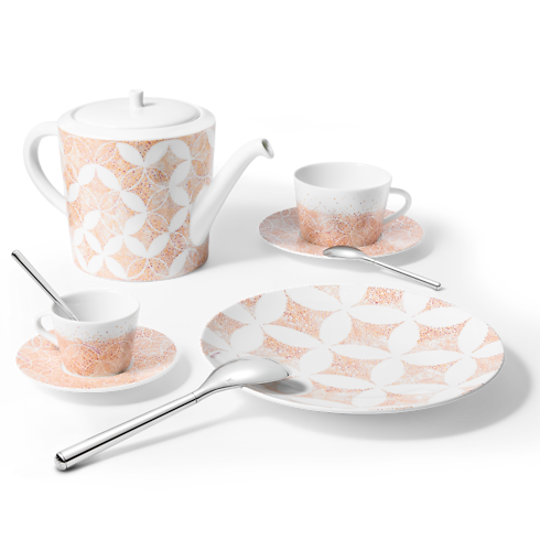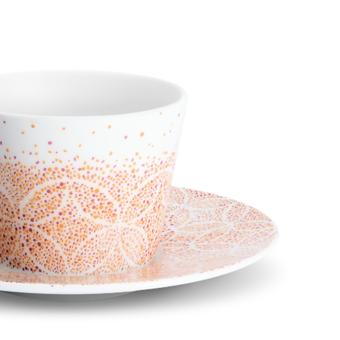 Sở hữu thiết kế đồng điệu với các sản phẩm khác trong cùng bộ sưu tập, bộ tách cà phê và đĩa nhỏ này là sự kết hợp giữa tay nghề bậc thầy và các chi tiết kinh điển của nhà mốt Pháp. Xuất hiện nổi bật trên nền sứ trắng cao cấp là họa tiết Constellation tựa như một đêm đầy sao, được tạo nên từ mô típ hoa Monogram đặc trưng và hình thoi. Bộ sản phẩm tinh xảo sẽ mang đến giây phút thưởng thức cà phê trọn vẹn.