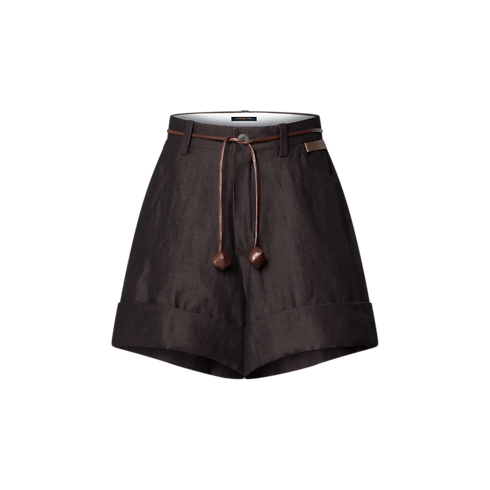 Mẫu quần ngắn phong cách may đo này toát lên vẻ thanh lịch nhờ hỗn hợp chất liệu len-lanh cao cấp trong gam màu đậm. Thiết kế sở hữu phom dáng cạp cao, suôn thẳng, trong khi gấu quần bản lớn tạo điểm nhấn cho tổng thể. Ngoài ra, thắt lưng dây da mảnh có điểm xuyết các chi tiết LV Cubes bắt mắt giúp tôn lên nét phóng khoáng. Mảnh da Louis Vuitton Paris thời thượng của mùa này được khéo léo đính bên hông, hoàn thiện diện mạo sang trọng.