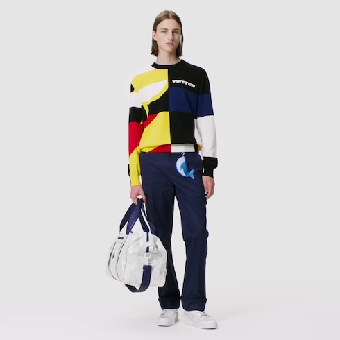 Thuộc bộ sưu tập đánh dấu sự trở lại của giải đua thuyền Louis Vuitton America's Cup lần thứ 37, mẫu quần dài quen thuộc ghi dấu ấn với họa tiết Damier cùng tông màu trên nắp túi và gấu quần, lồng ghép dòng chữ "Marque Louis Vuitton déposée". Logo Gaston ba màu thêu trên túi quần phía sau tạo điểm nhấn năng động hoàn thiện thiết kế.