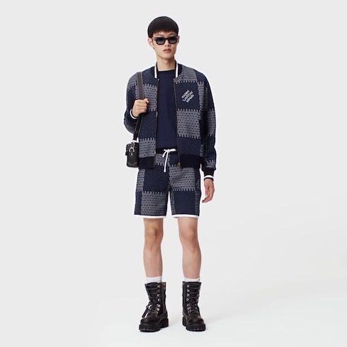 Được may từ hỗn hợp vải Cotton, mẫu quần ngắn thanh lịch nổi bật với họa tiết Damier cỡ lớn dệt kiểu Jacquard, lồng ghép dòng chữ "L.Vuitton Marque déposée" trên ống quần bên trái. Đường viền màu trắng trên túi và gấu quần hoàn thiện tổng thể trẻ trung, thời thượng. Kết hợp hài hòa với áo sơ mi và áo khoác đồng điệu, thiết kế là gợi ý đáng tham khảo cho tủ đồ mùa hè.