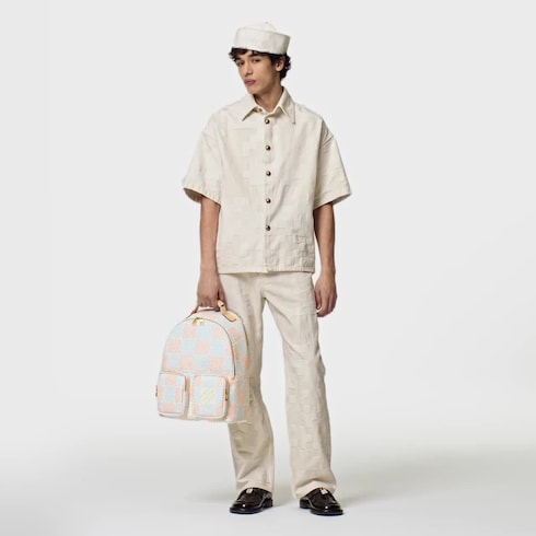 Áo sơ mi Denim thoáng mát sở hữu phom dáng Relaxed Fit phù hợp để dạo chơi bên bãi biển. Được dệt từ vải Denim màu kem có mô típ Damoflage dệt bằng kỹ thuật Jacquard, áo nổi bật với dòng chữ "Marque L.Vuitton déposée" thêu trên ngực áo và hàng khuy cài màu vàng ánh kim gợi nhớ đến những bộ đồng phục hải quân. Có thể kết hợp áo với quần đồng điệu để tạo nên bộ trang phục mùa hè thoải mái.