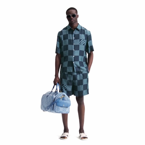Được may từ vải lụa Twill óng ánh, mẫu áo sơ mi ngắn tay gây ấn tượng với nền vải phủ họa tiết Damier, lồng ghép dòng chữ Marque L.Vuitton Déposée đặc trưng. Với gam màu xanh dương thanh lịch, thiết kế dễ dàng kết hợp với các mẫu trang phục màu trơn hoặc quần ngắn đồng điệu để tạo nên tổng thể thời thượng.