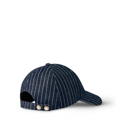 Mũ lưỡi trai Denim Stripes tôn vinh di sản của Maison với thiết kế tối giản và năng động. Nổi bật trên nền vải màu xanh Navy là những đường kẻ sọc cổ điển và dòng chữ thêu "Louis Vuitton Paris Malletier". Quai mũ màu trắng với khuy ngọc trai giúp dễ dàng điều chỉnh kích cỡ và tạo điểm nhấn tinh tế cho tổng thể.
