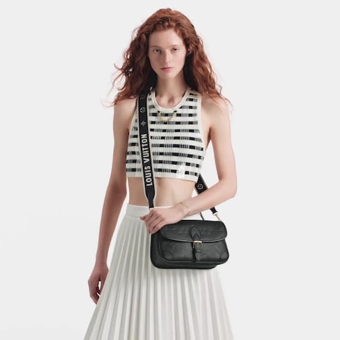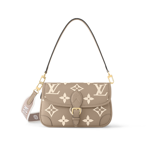 Túi Diane được may từ chất liệu Monogram Empreinte, một loại da có hoa văn dập nổi của nhà mốt Pháp. Thiết kế có dây đeo bằng da dễ tháo rời để xách tay hoặc đeo trên vai, kết hợp một dây đeo chéo bản rộng được dệt dòng chữ "Louis Vuitton" kiểu Jacquard. Sản phẩm sẽ kết hợp hài hòa với cả trang phục năng động hoặc sang trọng.