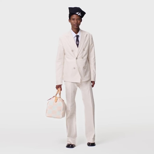 Mẫu áo sơ mi Cotton trắng ghi dấu ấn với mô típ LV Vers mới trên túi áo trước ngực, điểm xuyết khuy cài hiệu ứng ngọc trai mang phong cách thủy thủ lịch lãm. Thiết kế tinh giản sẽ kết hợp hài hòa với cả trang phục thường nhật và âu phục sang trọng.