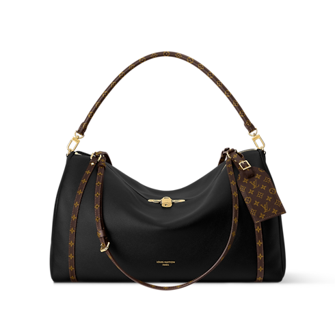 Lấy cảm hứng từ phong cách Rock 'n' roll, phiên bản màu đen thanh lịch của túi Express PM được làm từ da bê với họa tiết Monogram Saga đặc trưng, tô điểm đường viền bằng da bò. Dấu ấn thương hiệu còn được thể hiện qua lớp lót có mô típ Monogram cùng thẻ giữ chìa khóa hình chuông và ổ khóa màu bạc có thể gắn vào đầu khóa kéo.