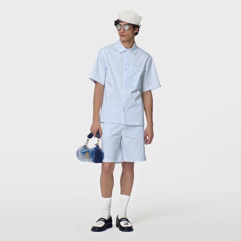 Mẫu quần ngắn bằng vải Cotton toát lên nét năng động và cá tính của phong cách Workwear với 2 túi cài khuy có hoa văn Monogram được in bằng kỹ thuật Flock. Thiết kế dáng suôn rộng rãi kết hợp hài hòa với chiếc áo sơ mi ngắn tay đồng điệu để tạo nên bộ trang phục thoải mái cho mùa hè.