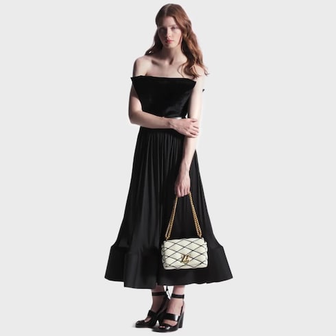 Được may từ da cừu mềm mại và sang trọng, túi GO-14 MM nổi bật với hoa văn được may chần bông lấy cảm hứng từ những chiếc rương di sản của nhà mốt. Khoá LV Twist màu vàng ánh kim tô điểm cho túi thêm thời thượng. Phần quai xách có thể được dùng như một miếng đệm da trên dây xích để tạo cảm giác thoải mái khi đeo trên vai hoặc đeo chéo.
