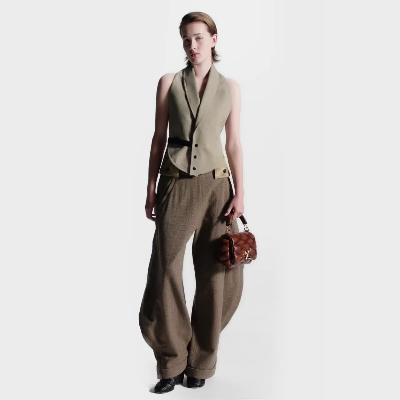 Nicolas Ghesquière biến tấu chiếc túi GO-14 MM với những kỹ thuật mới. Phiên bản này được may từ da cừu có lớp đệm chần bông, kết hợp màu nâu cháy được vẽ thủ công tạo nên tổng thể mang đậm cảm hứng vị lai. Tay cầm và dây đeo đều tháo rời được, riêng dây đeo còn có thể điều chỉnh độ dài để mang đến nhiều lựa chọn đeo linh hoạt. Sản phẩm được hoàn thiện với khóa LV Twist biểu tượng.