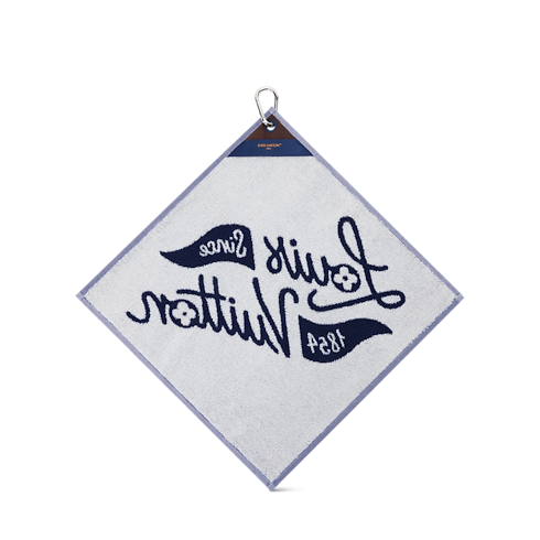 Khăn Golf mang đến điểm nhấn tinh tế trên sân cỏ. Thiết kế màu xanh Navy nổi bật với dòng chữ "Louis Vuitton Since 1854", điểm xuyết họa tiết thêu hình lá cờ sang trọng. Móc cài màu bạc giúp dễ dàng gắn khăn vào túi hoặc đỉa thắt lưng, giữ khăn luôn bên cạnh để tiện vệ sinh gậy Golf.