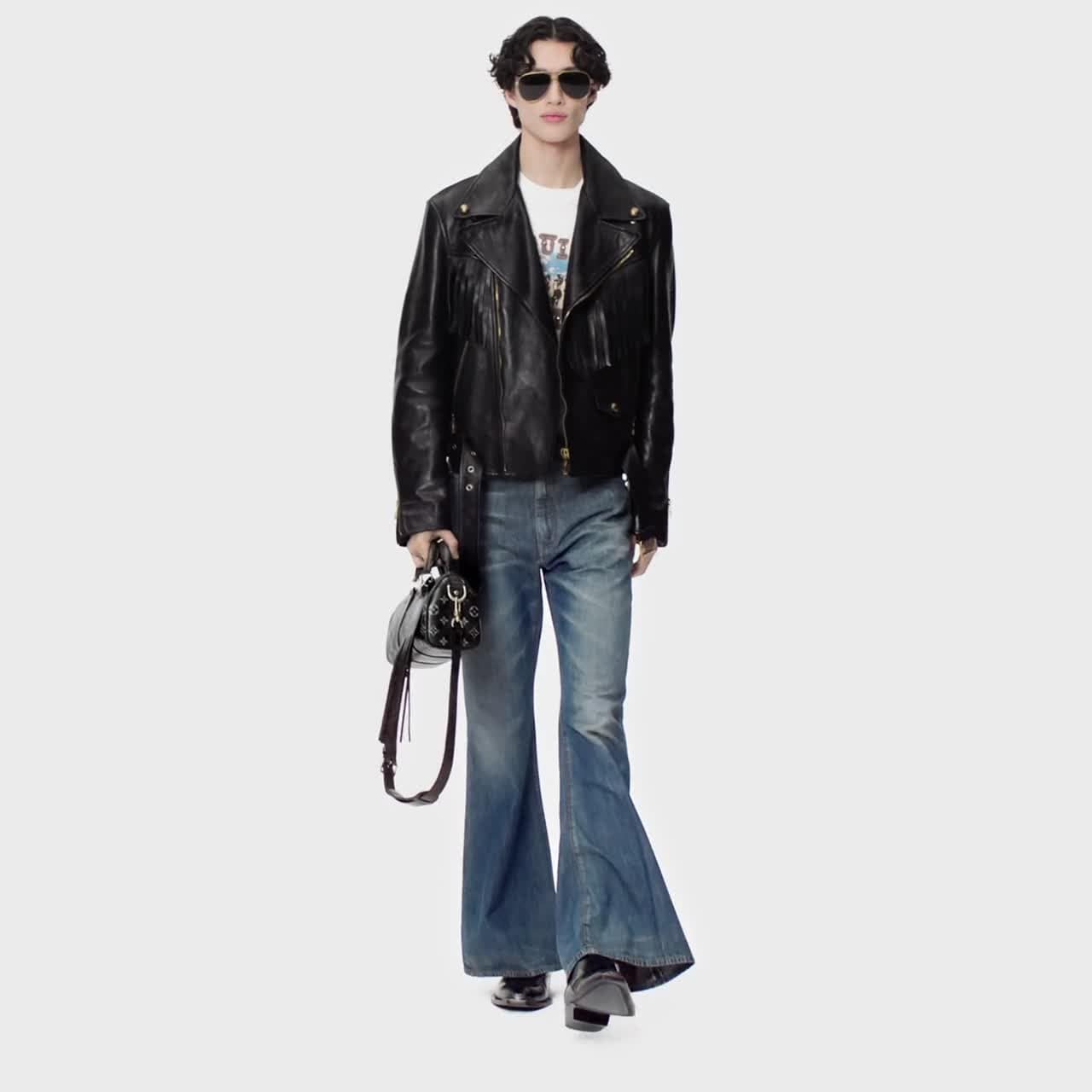 - Chữ Louis Vuitton phong cách cao bồi được in trên ngực áo