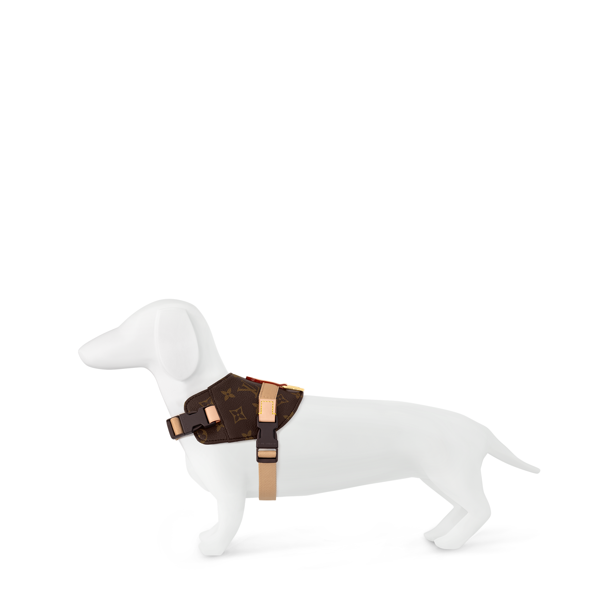 Là phụ kiện lý tưởng cho buổi đi dạo cùng cún cưng, mẫu đai yếm đẹp mắt ghi dấu ấn với chất liệu Monogram Canvas và da bò tự nhiên. Dây đai được tô điểm dòng chữ LOUIS VUITTON, dễ dàng điều chỉnh độ rộng cho vừa vặn với cơ thể thú cưng. Thiết kế có móc cài để gắn dây dắt đồng điệu.
