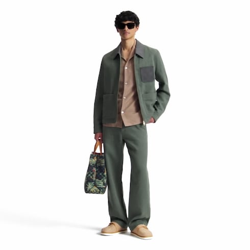 Mẫu quần dài tinh giản toát lên hơi thở mùa hè với chất liệu Linen nhẹ nhàng màu xanh lá đậm, nổi bật với miếng da Nubuck Jacqueron điểm xuyết hoa văn Damier. Thiết kế sẽ kết hợp hài hòa với áo khoác đồng điệu để tạo thành tổng thể thời thượng.