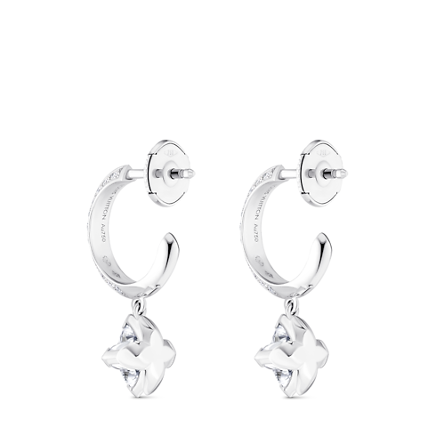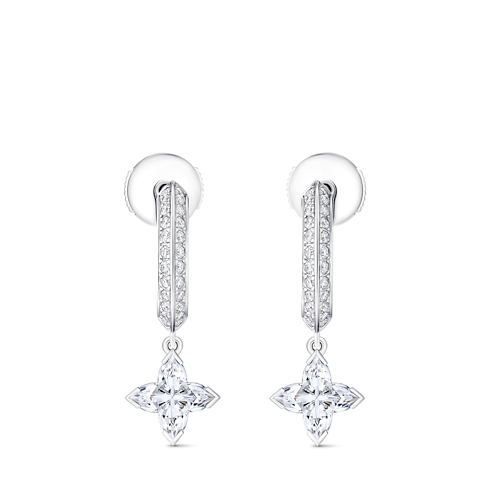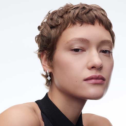 Khuyên tai LV Diamonds Pavé tôn vinh nghệ thuật chế tác trang sức tinh xảo của Maison. Được chế tác từ vàng trắng 18K, mẫu khuyên tai này nổi bật với viên kim cương LV Monogram Star biểu tượng, kết hợp các viên kim cương tròn lấp lánh. Thiết kế bao quanh viên đá chủ lấy cảm hứng từ những bông hoa cách điệu của họa tiết Monogram quen thuộc. Sản phẩm tinh nghịch, dễ dàng biến tấu này là món quà ý nghĩa, xứng đáng được trân trọng theo năm tháng.