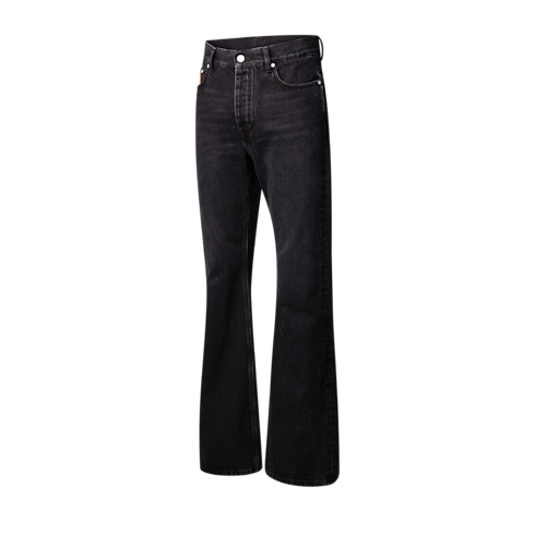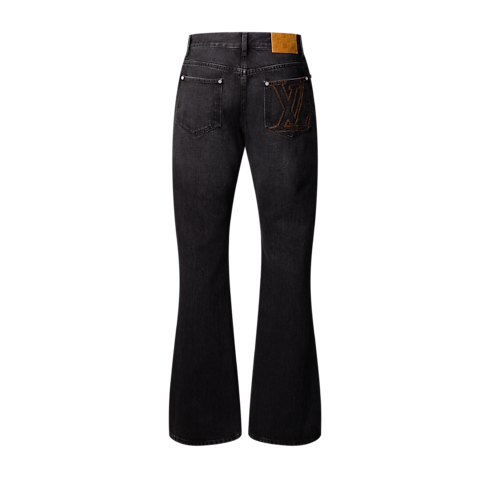 Là mảnh ghép không thể thiếu trong tủ đồ, mẫu quần Jean ống loe bằng vải Denim Nhật Bản cao cấp được nâng tầm nhờ kỹ nghệ may mặc của Louis Vuitton. Thiết kế có tông màu đen hiệu ứng bạc màu, dễ dàng kết hợp với nhiều kiểu trang phục. Sản phẩm được hoàn thiện với logo LV khâu diễu bằng chỉ màu vàng nâu trên túi sau và miếng da Nubuck trên túi phụ lẫn cạp quần.