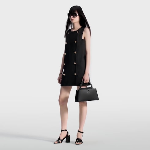 Dòng sản phẩm LV Isola đình đám ra mắt thiết kế mới: xăng-đan LV Isola được may từ da bê dẻo dai. Mẫu giày thanh lịch sở hữu phần gót cao bằng da, nhấn nhá logo LV Circle cỡ lớn ở thân trên. Quai giày thanh mảnh ngang mắt cá chân được hoàn thiện với khóa cài màu vàng ánh kim.