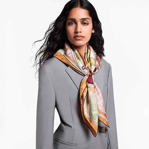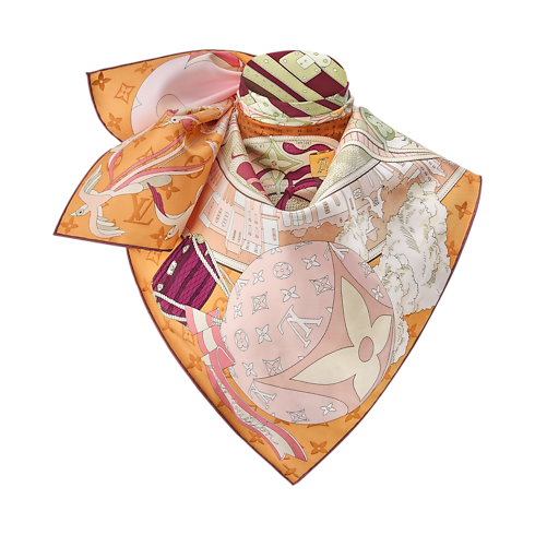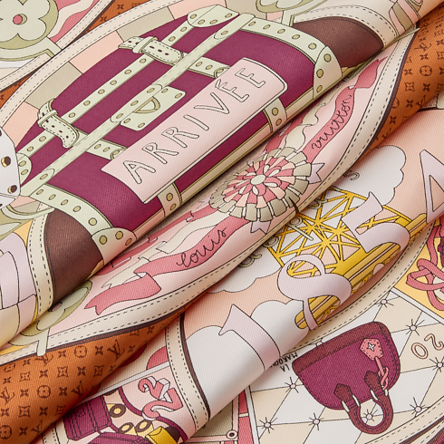 Khắc họa rõ nét tinh thần viễn du lâu đời, khăn lụa vuông LV Journey 90 mở ra một hành trình khám phá thế giới đầy thú vị. Họa tiết sinh động gồm có hành lý, khinh khí cầu, tàu hỏa, tàu thủy và máy bay. Mô típ xúc xắc, mây trời cùng họa tiết Monogram và Damier biểu tượng tô điểm dấu ấn thương hiệu cho thiết kế.