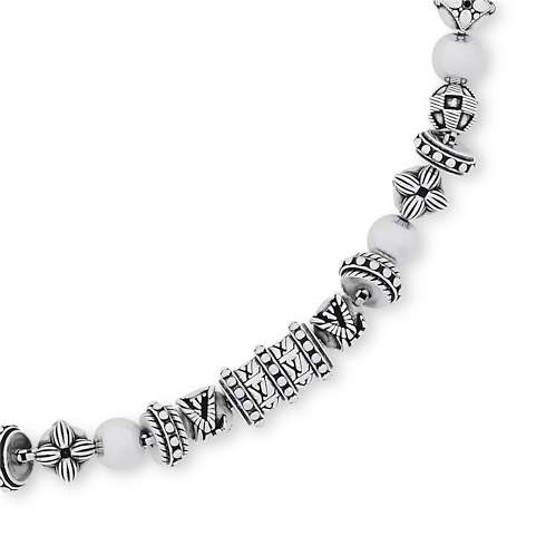 Vòng cổ LV Whisper Beads là biểu tượng của sự tinh tế và táo bạo, tôn vinh những dấu ấn đặc trưng của Maison cùng cảm hứng toàn cầu. Được đúc từ bạc Sterling, vòng cổ gây ấn tượng với các chi tiết hoa Monogram và logo LV được chạm khắc tỉ mỉ trên các hạt trang trí hình dạng khác nhau có họa tiết Guilloché, một chi tiết tôn vinh kỹ nghệ thủ công tinh xảo của người Ấn Độ.