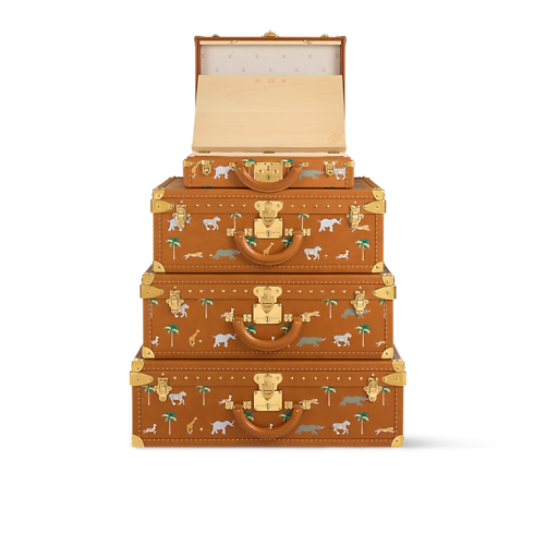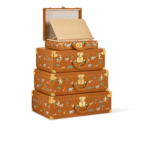 Lấy cảm hứng từ bộ phim The Darjeeling Limited, Giám đốc sáng tạo Pharrell Williams đã làm mới mẫu rương Pyramide Darjeeling với chất liệu da ngả màu tự nhiên, với bề mặt xử lý bằng kỹ thuật Sfumato Patina để tạo hiệu ứng cổ điển. Bốn chiếc vali - gồm ba rương Alzer và một rương President đặt cố định ở trên cùng - được trang trí bằng họa tiết động vật và hàng cây cọ tinh nghịch. Mỗi sản phẩm đều được đánh số nhằm tôn vinh bộ phim, theo thứ tự từ trên xuống dưới: 12, 7, 1, 3.