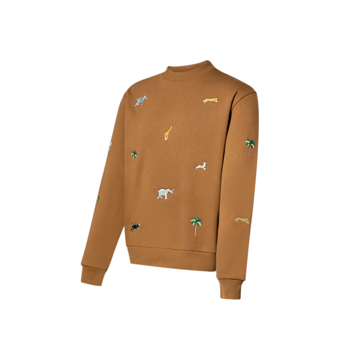 Mẫu áo dệt kim thường nhật được may từ vải Cotton hữu cơ mềm mại, điểm xuyết mô típ Louis Vuitton x The Darjeeling Express đặc trưng của bộ sưu tập Xuân-Hè 2026 trên toàn bộ thiết kế. Các chi tiết thêu tỉ mỉ mô tả sinh động cây cọ và các loài động vật trên nền màu nâu Caramel ấm áp. Tôn vinh nghệ thuật viễn du, sản phẩm mang đến điểm nhấn tinh tế cho phong cách thường nhật.