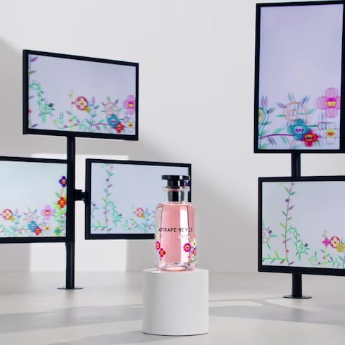 Thuộc bộ sưu tập hợp tác độc quyền giữa Louis Vuitton và Takashi Murakami, nước hoa Attrape-Rêves nay khoác lên diện mạo tươi mới, đa sắc màu. Họa tiết hoa lá tinh xảo trên thân chai tái hiện phong cách Superflat đặc trưng của nghệ sĩ người Nhật, mang đến cảm giác vui tươi và đồng điệu với mùi hương ngọt ngào của Attrape-Rêves.