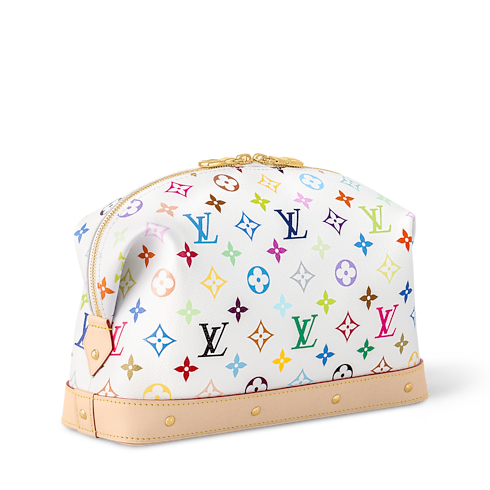 Thuộc bộ sưu tập hợp tác Louis Vuitton x Murakami 2025, túi Cosmetic Pouch GM được biến tấu rực rỡ với chất liệu Canvas có mô típ Monogram màu cầu vồng đặc trưng của họa sĩ Nhật Bản, điểm xuyết đường viền bằng da bò đính đinh tán ấn tượng. Thiết kế có một ngăn lớn rộng rãi với lớp lót bằng vải dệt dễ giặt, tô điểm khóa kéo màu vàng ánh kim to bản.