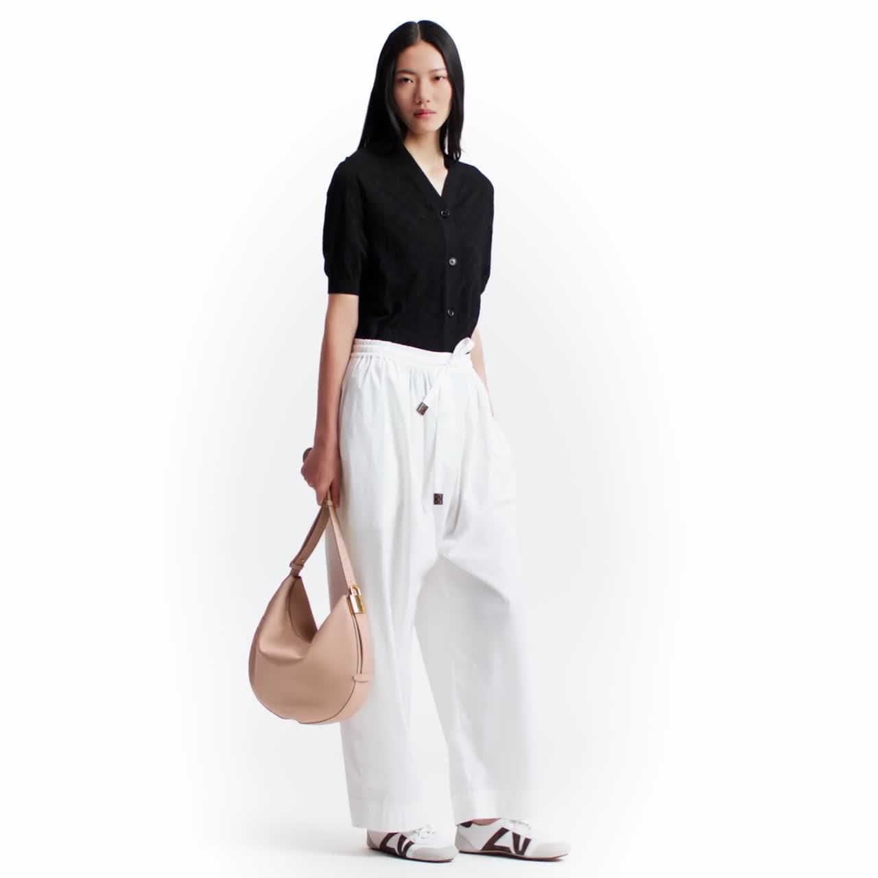 Là gợi ý lý tưởng cho những ngày mát mẻ, mẫu áo khoác được may từ hỗn hợp len mềm mại trong phom dáng suôn và tay ngắn thoải mái. Điểm nhấn nổi bật nằm ở họa tiết Mahina Monogram đục lỗ tinh xảo và chi tiết bo sọc gân cùng tông màu. Hàng khuy cài phía trước và đường viền cổ chữ V hoàn thiện tổng thể thanh lịch.