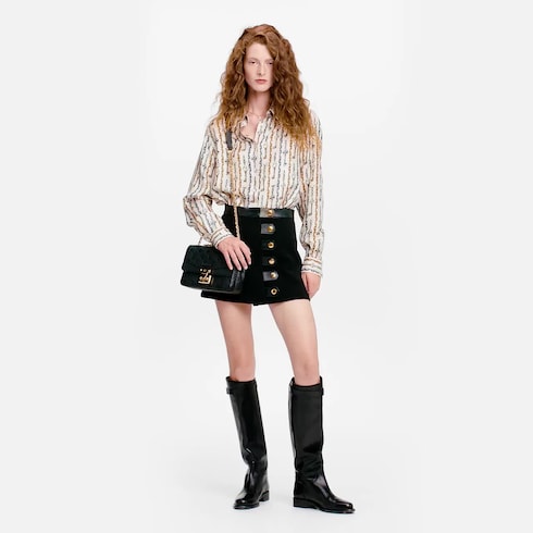 Túi Marceau thanh lịch được làm từ da Monogram Empreinte, điểm xuyết phần nắp túi bằng da trơn và lớp lót bằng da mềm mại. Thiết kế trông nổi bật hơn nhờ các chi tiết màu vàng ánh kim như dây xích và khóa S-lock mang tính biểu tượng. Bên trong túi đựng vừa điện thoại và ví dài.