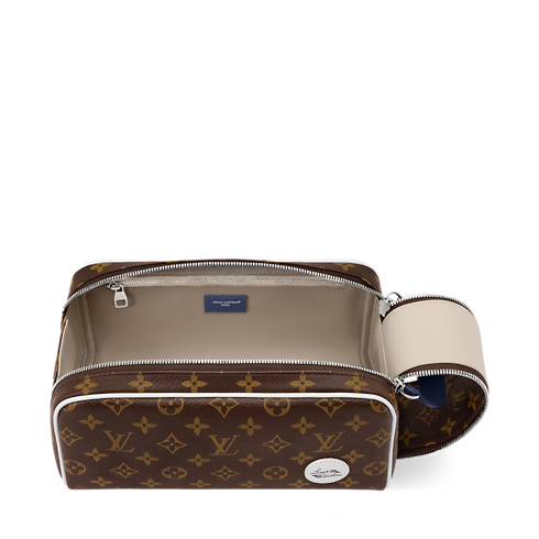 Được may từ chất liệu Monogram Canvas, túi Dopp Kit gây ấn tượng với chi tiết trang trí màu trắng có chữ Louis Vuitton - một điểm nhấn thuộc bộ sưu tập LV Golf. Quai xách bằng da kết hợp miệng túi rộng có khóa kéo đôi giúp dễ dàng lấy vật dụng cần thiết. Sản phẩm là lựa chọn lý tưởng để đựng như điện thoại, ví và các vật dụng chăm sóc cá nhân khác.