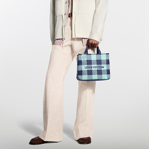 Túi Mini Shopper Tote được dệt tinh xảo từ hỗn hợp da bê nguyên bản-da bò tái chế, nổi bật với họa tiết kẻ caro Damier độc đáo. Mặt trước được thêu chữ LOUIS VUITTON tạo nên từ các mảnh da được tái sử dụng. Hai bên túi được tô điểm với chữ “Marque L. Vuitton déposée” do Giám đốc sáng tạo Pharrell Williams thiết kế, gợi nhắc dấu ấn lịch sử của thương hiệu.