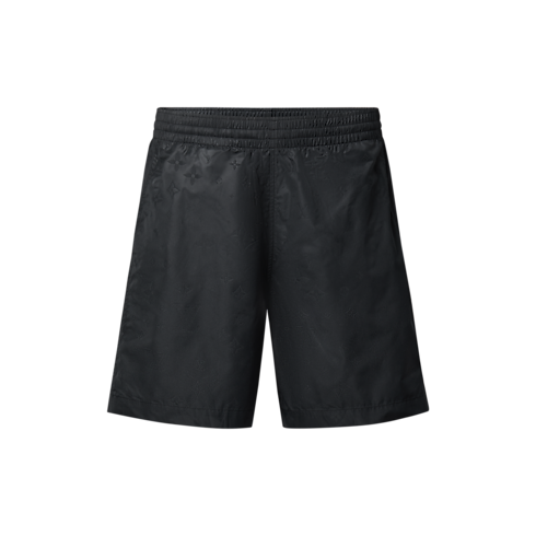Mẫu quần bơi màu đen thanh lịch được may từ vải kỹ thuật nhanh khô, kết hợp với cạp quần có dây rút dễ điều chỉnh độ rộng. Dấu ấn thương hiệu được thể hiện qua họa tiết Monogram dập nổi trên toàn bộ nền vải. Thiết kế có thể phối hợp với những mẫu áo thun màu đen trong cùng bộ sưu tập để hoàn thiện tổng thể tinh tế.