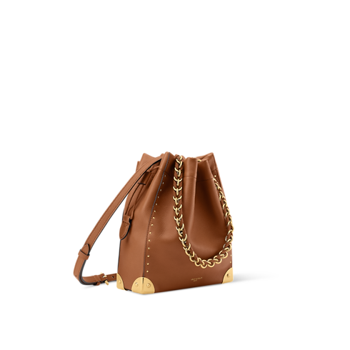 Túi Noé Trunk dáng Bucket toát lên vẻ đẹp thanh lịch vượt thời gian mà không kém phần hiện đại. Thiết kế được may từ da bê mịn, tô điểm chi tiết kim loại màu vàng sáng bóng như các góc túi lấy cảm hứng từ rương gợi nhớ đến di sản viễn du của Maison, cùng dây xích bện da có thể tháo rời. Sản phẩm được hoàn thiện với dây rút để bảo quản an toàn các vật dụng quan trọng.