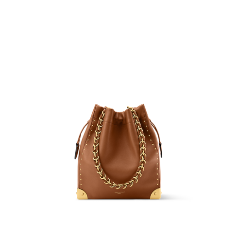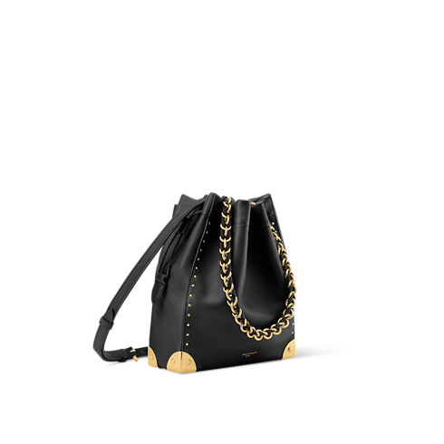 Túi Noé Trunk dáng Bucket toát lên vẻ đẹp thanh lịch vượt thời gian mà không kém phần hiện đại. Thiết kế được may từ da bê mịn, tô điểm chi tiết kim loại màu vàng sáng bóng như các góc túi lấy cảm hứng từ rương gợi nhớ đến di sản viễn du của Maison, cùng dây xích bện da có thể tháo rời. Sản phẩm được hoàn thiện với dây rút để bảo quản an toàn các vật dụng quan trọng.