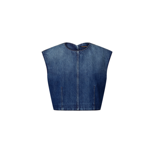 Mẫu áo này là sự hòa quyện giữa các chi tiết sang trọng và thoải mái. Áo được cắt may từ vải Denim thô trong phom dáng Crop Top, điểm xuyết đường may diễu màu tương phản cùng hai nếp xếp ly ở mặt trước. Mặt lưng áo được cắt xẻ độc đáo và có nút cài bằng chất liệu Monogram Canvas.