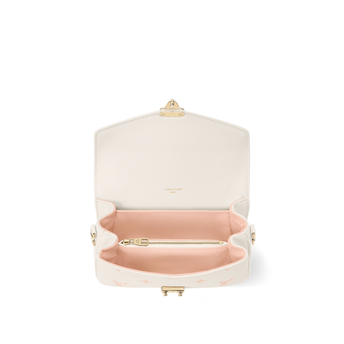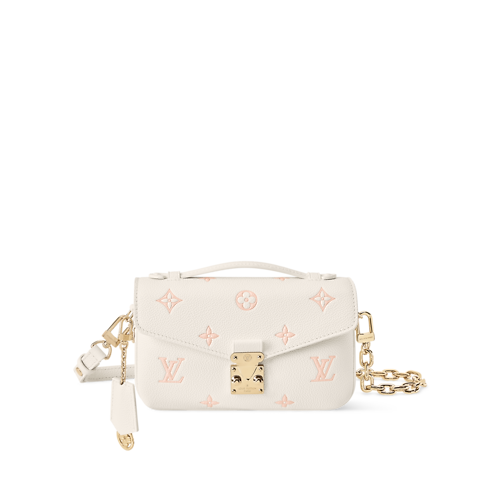 Là lựa chọn thời thượng cho chuyến đi cuối tuần, phiên bản này của túi Pochette Métis East West ghi dấu ấn với gam màu trắng sữa-hồng đào nhã nhặn. Thiết kế được làm từ da Monogram Empreinte, tô điểm chi tiết kim loại màu vàng nhạt như khóa S-lock kinh điển. Sản phẩm được hoàn thiện với ba ngăn lớn và một ngăn bên ngoài có khóa kéo.