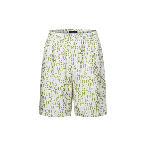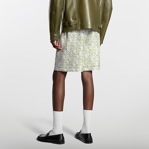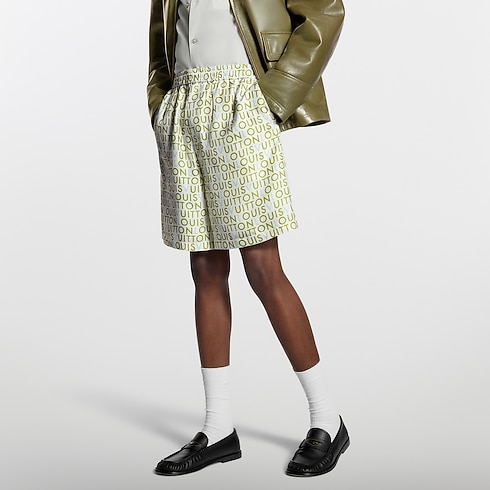 Mẫu quần ngắn được dệt từ lụa nguyên chất in mô típ LV Maze từng xuất hiện trong buổi trình diễn bộ sưu tập Xuân-Hè 2026. Dòng chữ Louis Vuitton màu xanh lá-xanh dương được lấy cảm hứng từ những biển quảng cáo vẽ tay thường thấy tại Ấn Độ, điểm xuyết dấu ấn hiện đại trên nền vải màu trắng sữa. Thiết kế có thể kết hợp với áo ngắn tay đồng điệu để tạo nên bộ trang phục sang trọng và thoải mái.