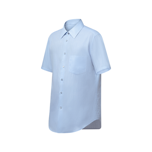 Là gợi ý lý tưởng cho những ngày mát mẻ, mẫu áo sơ mi ngắn tay được may từ vải Cotton hữu cơ màu xanh dương nhạt, điểm xuyết họa tiết Monogram Pinstripes cùng tông màu được dệt kiểu Jacquard tinh xảo. Các dấu ấn của Maison còn được thể hiện qua logo LV ở khuy áo trên cùng, nhãn dệt chữ LV và hoa Monogram tinh tế ở cuối nẹp áo. Áo có thể kết hợp với bộ âu phục đồng điệu để tạo nên tổng thể thanh lịch.