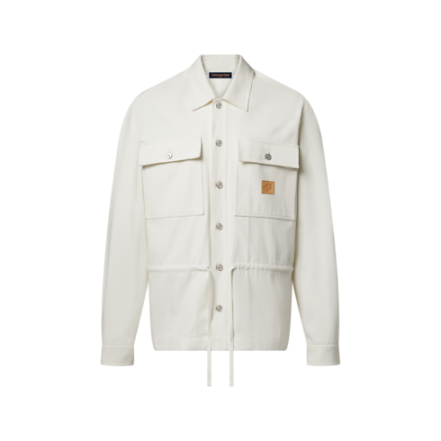Được may từ vải Cotton hữu cơ, mẫu áo sơ mi thể hiện phong cách thanh lịch và thoải mái đặc trưng của bộ sưu tập Xuân-Hè 2026. Mô típ chữ V cùng tông màu được dệt kiểu Jacquard lên nền vải, trong khi túi có nắp tạo điểm nhấn ở trước ngực và chi tiết dây rút ở eo giúp tôn lên vóc dáng. Thiết kế được hoàn thiện với miếng da tự nhiên in logo LV trên túi bên trái và chữ Vuitton in ở phía sau áo.