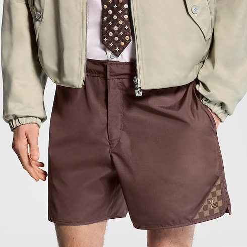 Mẫu quần bơi màu nâu đậm được may từ vải Ripstop kỹ thuật, mang đến vẻ ngoài thanh lịch và hiện đại. Phom dáng tinh giản được điểm xuyết chi tiết trang trí Damier Heritage bằng Silicone với chữ LV hiệu ứng 3D tinh xảo ở ống quần trái. Sở hữu túi dáng xéo và khóa kéo tiện dụng, thiết kế này còn có thể kết hợp cùng các bộ trang phục thường nhật hoặc thể thao để tạo nên vẻ ngoài ấn tượng.