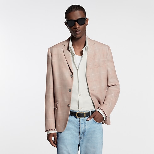 Mẫu áo khoác len một hàng khuy thuộc bộ sưu tập Xuân-Hè 2026 này toát lên nét thẩm mỹ tinh tế của phong cách Dandy kiểu Ấn Độ. Được may đo từ vải có họa tiết kẻ ca rô Glen trong gam màu nâu Camel, mẫu áo nổi bật với những hạt cườm được thêu tinh xảo tựa như trang sức trên túi áo và cổ tay áo, cùng dòng chữ thêu Louis Vuitton Paris trên túi áo trái. Thiết kế có thể kết hợp cùng quần dài đồng bộ để tạo nên bộ âu phục thanh lịch.